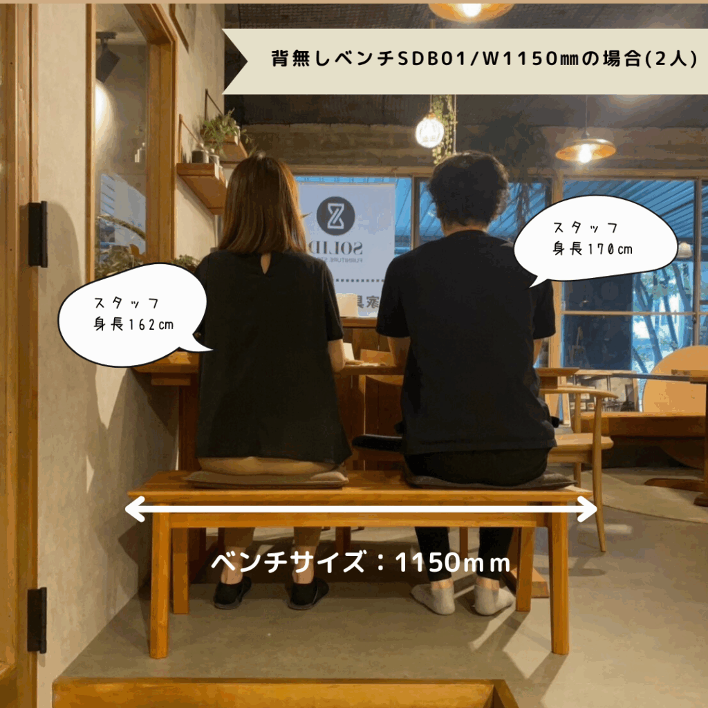 ソリッドのベンチはオーダーベンチですのでサイズもたくさん選べます。