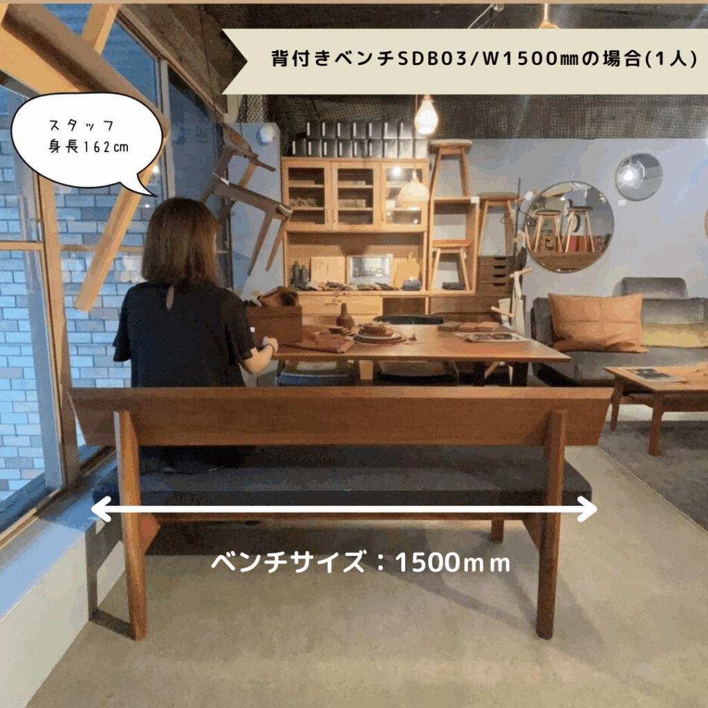 次は『背付きベンチSDB03W1500』に座ってみます。