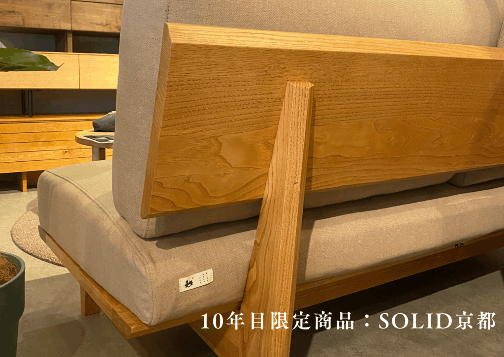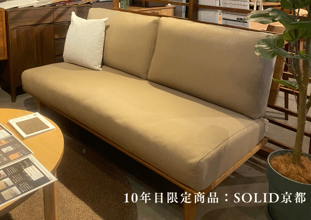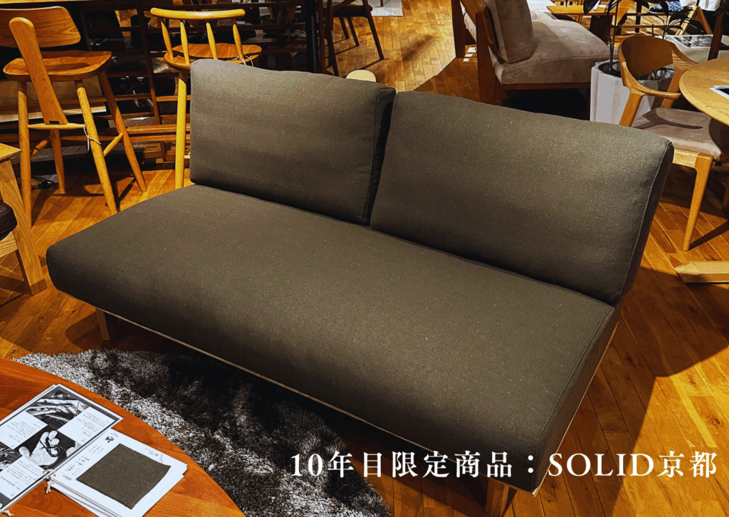 SOLID京都店では、大人気SOLIDオリジナルアームレスソファでの展示となります。
