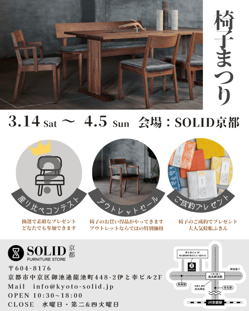 暖かくなるこの季節!SOLID京都店では、椅子のイベントを開催します✨